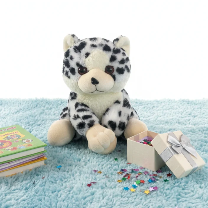 Filled with high-quality polyfiber, this snow leopard teddy maintains its shape while offering soft and cozy comfort. The cute facial detailing, soft paws, and compact hugging size make it a perfect companion for children.